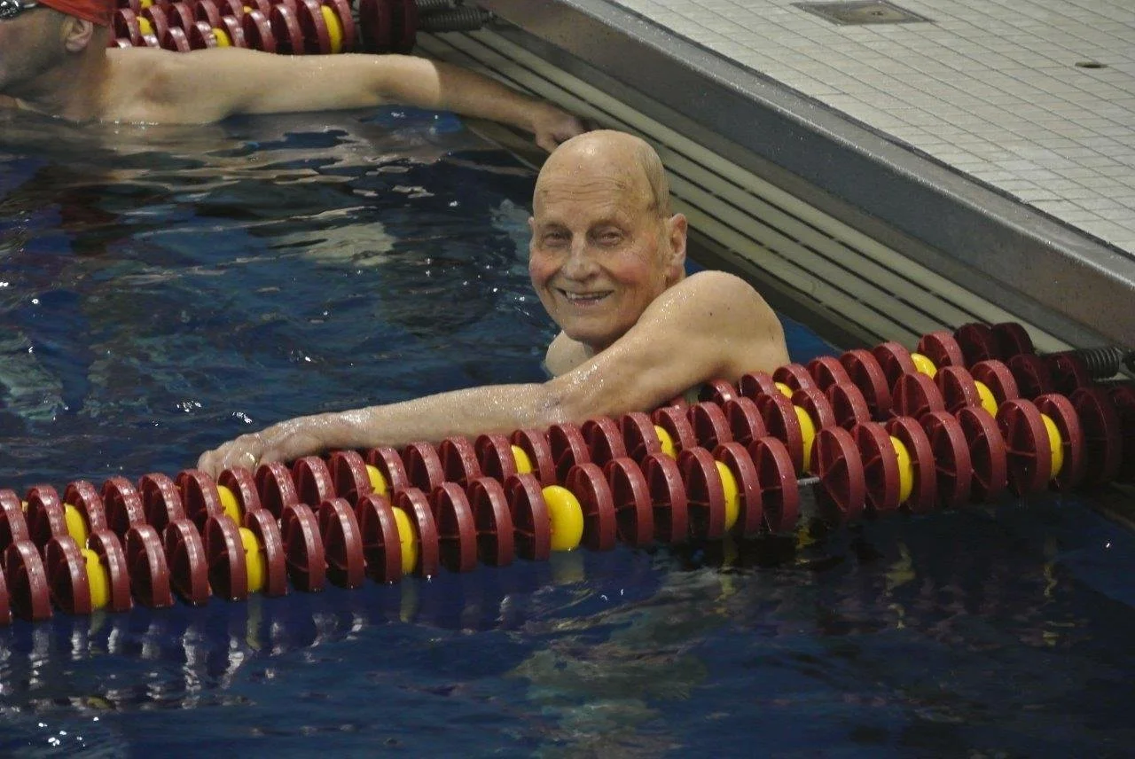 Over the next 40 years, Ray continued to workout and compete on a regular basis. He has become our most decorated Minnesota Masters Swimmer with 407 Top Ten Individual Times, 56 of those first places. He has been on 6 Top Ten Relays. Nationally he holds 14 current records, and has been named an All American Pool All Star 23 times. FINA has him listed twice in the All Time performers list. With all these honors, comes lots of pool practice time, and Ray welcomed the bigger, cooler University Aquatic Center after many years in Cooke Hall. A recent press release indicated the Natatorium has had 5 million visitors since it was built in 1990. We wonder how many of those visits were Ray’s?